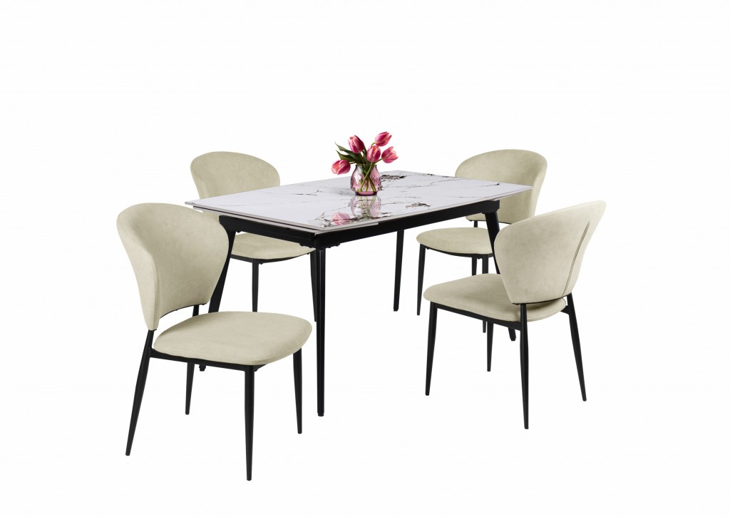 Anett bézs szék + Rebeka fehér márvány asztal