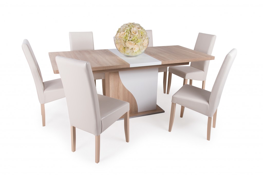 Berta bézs műbőr szék+Alíz sonoma-fehér asztal