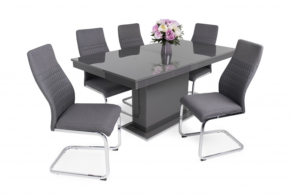 Levante sötét szürke szék + Magasfényű Flóra antracit asztal