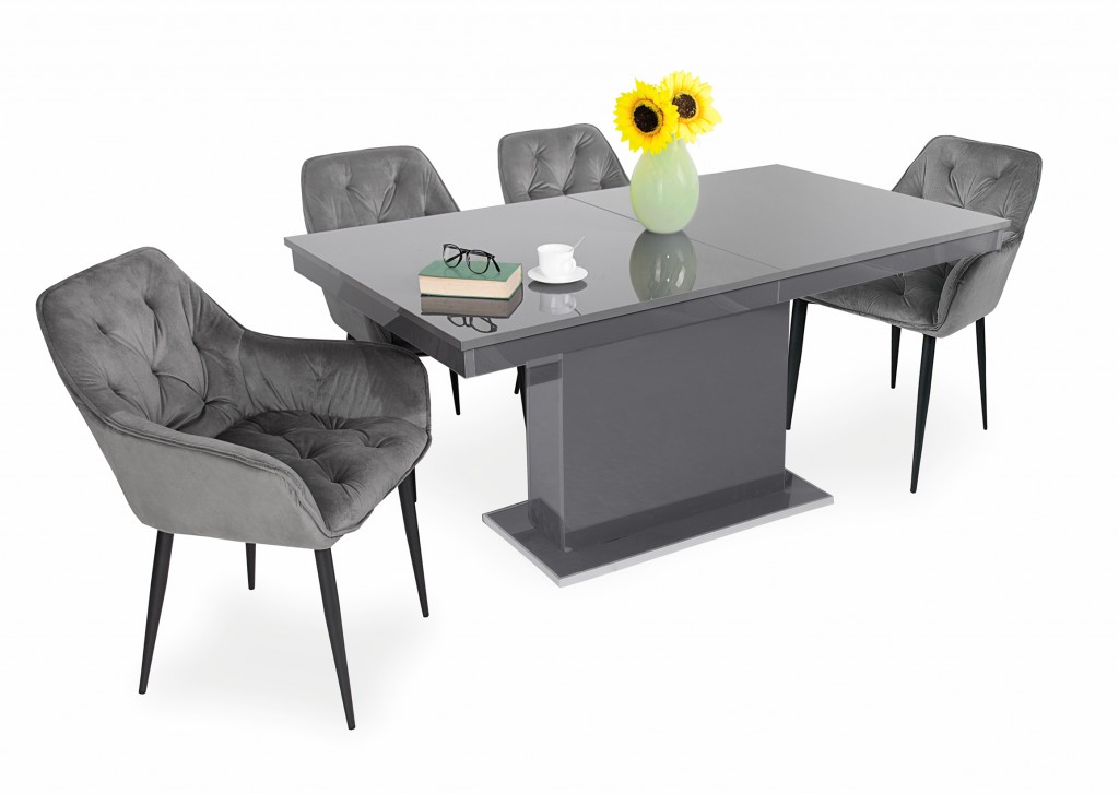 Noel szürke szék+Magasfényű Flóra antracit asztal