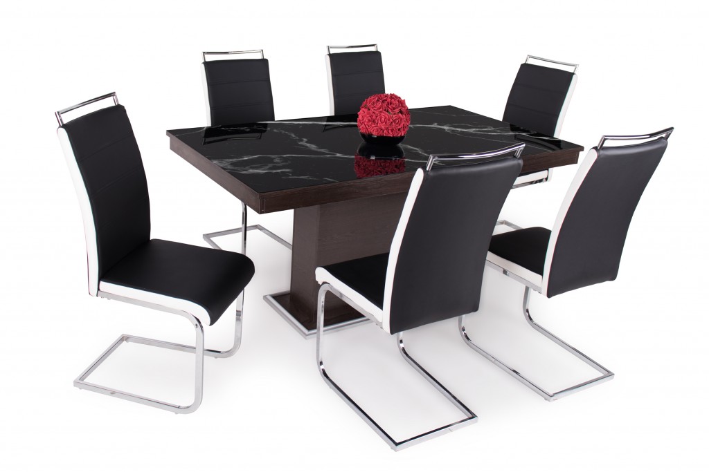 Száva fekete szék + Flóra Plusz wenge-fekete márvány asztal